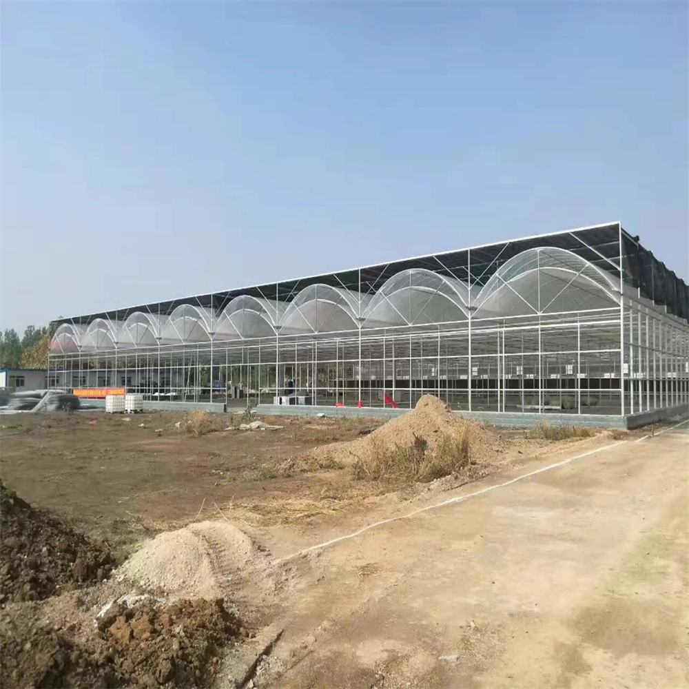 薄膜連棟溫室在不同地區(qū)有不同的結(jié)構(gòu)尺寸。但就總體而言,通用溫室跨度在6~12m,開間在4m左右,檐高3~4m。以自然通風為主的連棟溫室,在側(cè)窗和屋脊窗聯(lián)合使用時,溫室寬度宜限制在50m以內(nèi),而以機械通風為主的連棟溫室,溫室寬度可擴大到60m,但一般限制在50m左右;對溫室的長度,(從操作方便的角度來講)一般限制在100m以內(nèi),但沒有嚴格的要求。