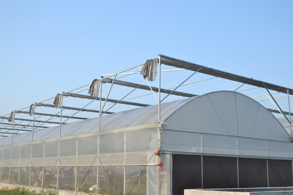薄膜連棟溫室在不同地區(qū)有不同的結(jié)構(gòu)尺寸。但就總體而言,通用溫室跨度在6~12m,開間在4m左右,檐高3~4m。以自然通風(fēng)為主的連棟溫室,在側(cè)窗和屋脊窗聯(lián)合使用時,溫室寬度宜限制在50m以內(nèi),而以機械通風(fēng)為主的連棟溫室,溫室寬度可擴大到60m,但一般限制在50m左右;對溫室的長度,(從操作方便的角度來講)一般限制在100m以內(nèi),但沒有嚴(yán)格的要求。