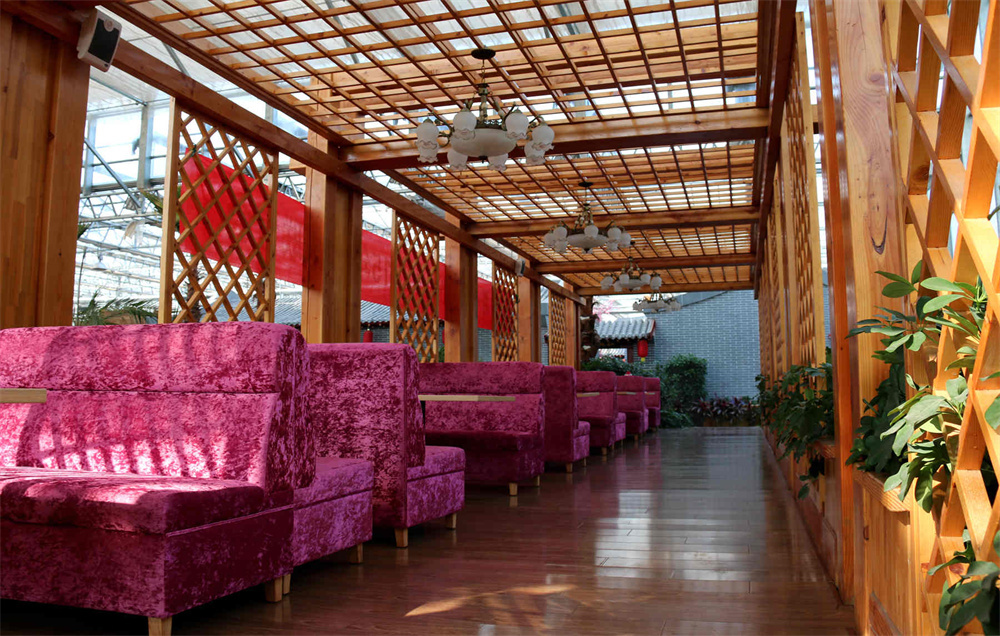 它綜合運(yùn)用建筑學(xué)、園林學(xué)、設(shè)施園藝學(xué)、生態(tài)學(xué)等 相關(guān)學(xué)科知識(shí)進(jìn)行規(guī)劃、設(shè)計(jì)和建設(shè),以設(shè)施調(diào)控技術(shù)、農(nóng)藝栽培技術(shù)來(lái)維護(hù)餐廳的優(yōu)美環(huán)境,形成以綠色景觀植物為主,蔬果、花草、藥菌為輔的植物配置格局,結(jié)合假山、小橋流水、竹木亭閣的園林景觀,為就餐者提供綠色、優(yōu)美、舒適、悠閑、宜人的就餐環(huán)境,使的溫室具有餐飲功能、觀賞功能、休閑功能、娛樂(lè)功能、綠色食品推廣功能、節(jié)能環(huán)保功能等。
