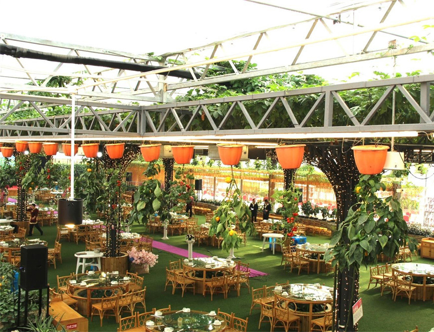 生態(tài)溫室餐廳是將現(xiàn)代設(shè)施農(nóng)業(yè)和綠色餐飲完美結(jié)合的產(chǎn)物,以人為本、餐飲為主、景觀為輔的- -種大型溫室類建筑,把溫室的輕巧、便捷、明朗的特點與建筑的多功能性融為- -體,餐廳有充滿綠色的自然環(huán)境,把大自然豐富多彩的生態(tài)景觀“微縮化"和“藝術(shù)化”.